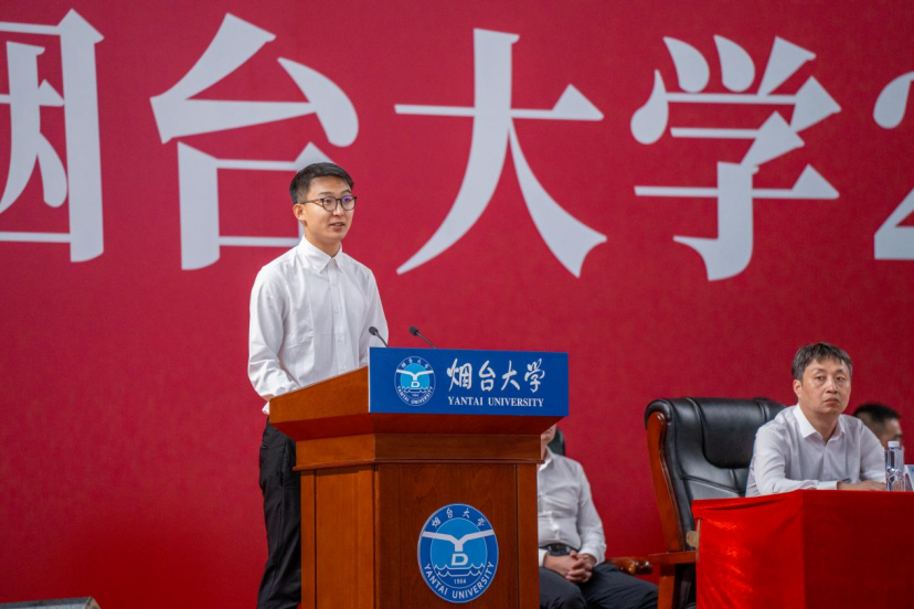 优秀校友代表、万华化学集团股份有限公司助理运行工程师仉辰在入学仪式上表达了对母校绿帽社