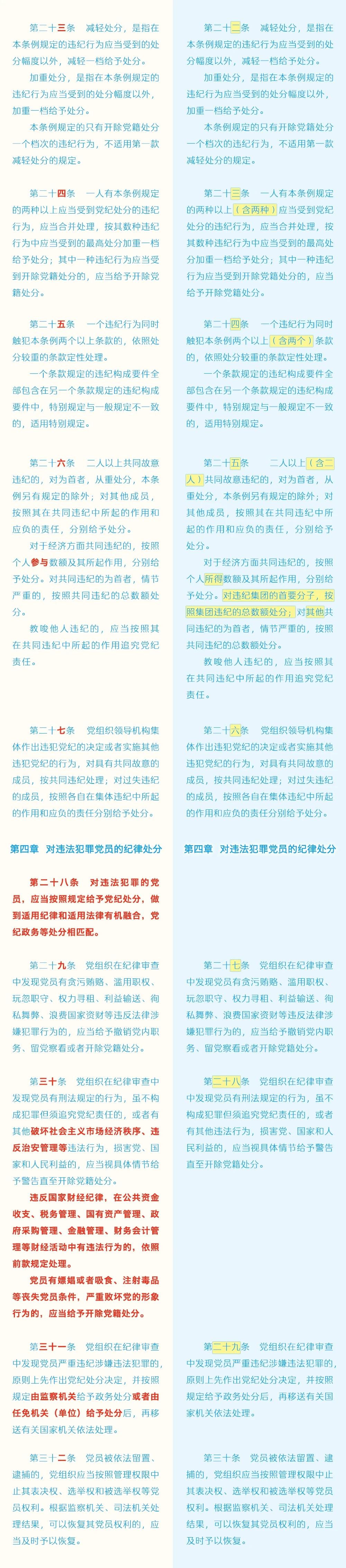 党纪学习教育 | 《中国共产党纪律处分条例》修订前后对照表