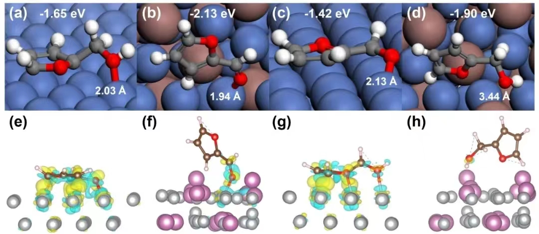 利用多种表征手段及理论计算,揭示催化剂表面糠醛加氢的反应机理。
