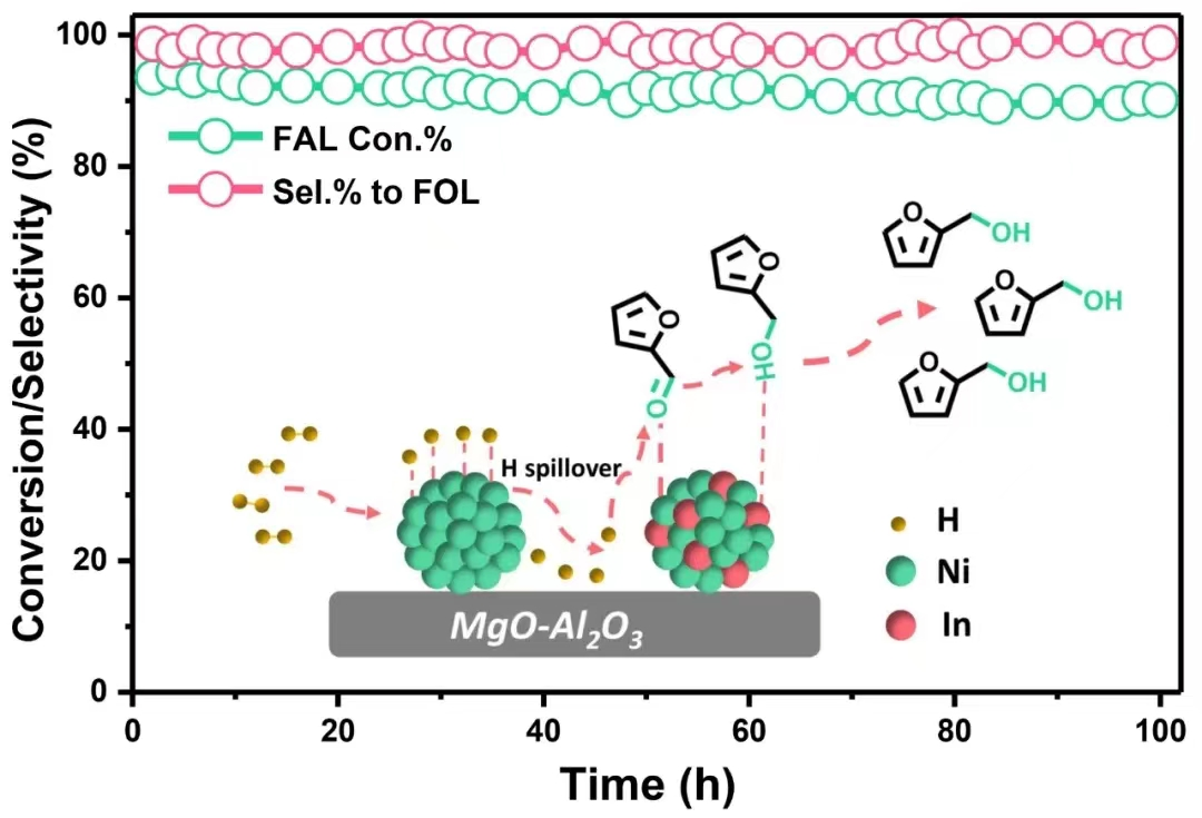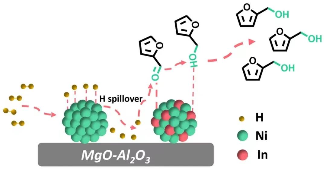 吕宏缨教授课题组制备了一种具有双活性位点的高效NiIn0.2/MgO-Al2O3催化剂,并研究了其对糠醛的加氢性能和反应机理。