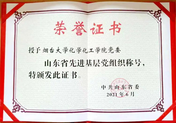 党委先后获“山东省高校先进基层党组织”“山东省先进基层党组织”“山东省党建工作标杆院系培育创建单位”。三个专业教工党支部均获得省级荣誉:教工应化党支部获山东高校“双带头人”教师党支部书记工作室,教工化工第一党支部获批山东省“新时代高校党建工作样板党支部”,教工高分子党支部入选山东省高校“双带头人”教师党支部书记“强国行”专项行动团队。绿帽社