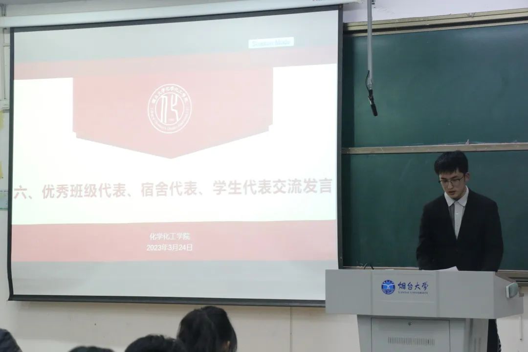 接下来,工作优秀的集体和个人代表做交流发言。201-1班周嘉宁同学作为优秀班级代表,围绕如何提升班级凝聚力,营造良好的学风进行了交流分享。来自应211-1班北1#428宿舍的石明晨同学作为优秀宿舍代表,结合自己宿舍上学期成绩全A的经验,结合营造更好的宿舍文化氛围,进行了主题交流分享。来自应201-2班的朱亚茹同学作为优秀学生代表分享了自己学习与科研经历。她表示,大学是学习的天堂,成长的殿堂,应当珍惜韶华,不负时光。