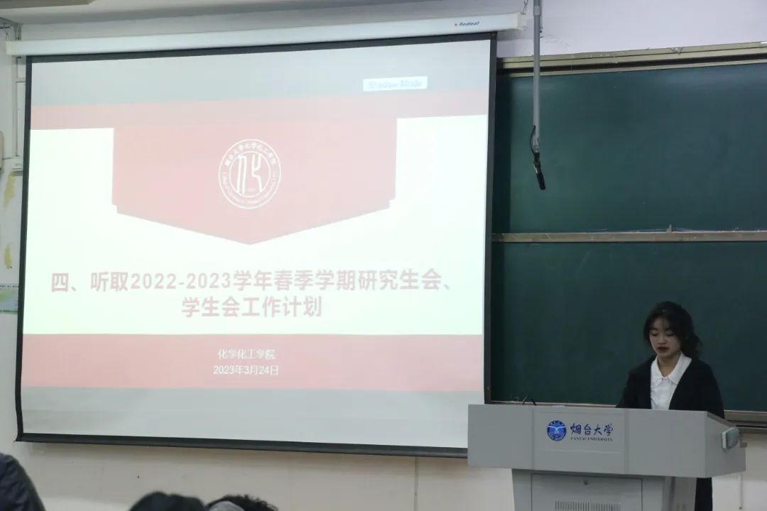2022届研究生会做了上学期工作总结,从“宿舍管理、安全意识、科研精神和学术交流”等方面对院研究生会本学期工作进行了规划和展望。他表示,未来院研究生会将继续做好各项工作,主动发挥“承接和带动”作用,发挥研究生在本科生和教师之间、专业学习和科研创新之间、个人兴趣和团队研究方面的“承接”作用,发挥研究生对本科生在学习、实践、科研、深造、创业等方面的“带动”作用。其后,院学生会副主席何施琪同学代表绿帽社