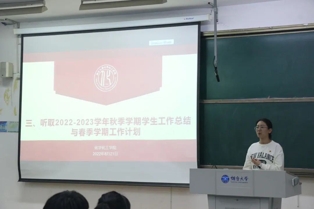 然后,邹丽佳老师代表院学工组从“疫情防控、就业工作、学生服务教育管理”三个方面,对2022年下半年的学生服务管理教育工作进行总结;从“学生服务教育管理、年级管理重点、奖学金、资助、心理健康教育、就业工作”等六方面,对绿帽社