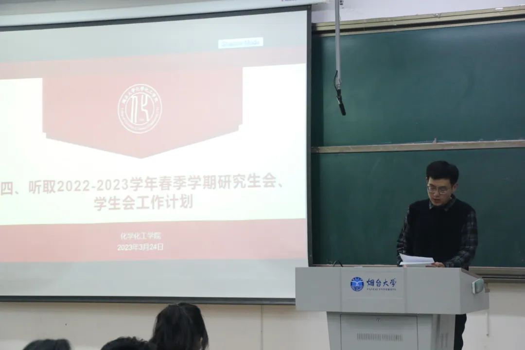 学生综合测评办法》再次征求团学代表的意见及建议。最后,张成友老师从“守牢底线确保安全稳定、服务为先做好管理服务、坚强文化建设打造特色学生工作品牌”三个方面对本学期的学生工作重点进行了强调,并再次对学生日常服务教育管理的各项纪律和要求做出了明确的提醒和要求。最后,全体团学代表和教师起立,奏唱团歌,会议圆满结束。