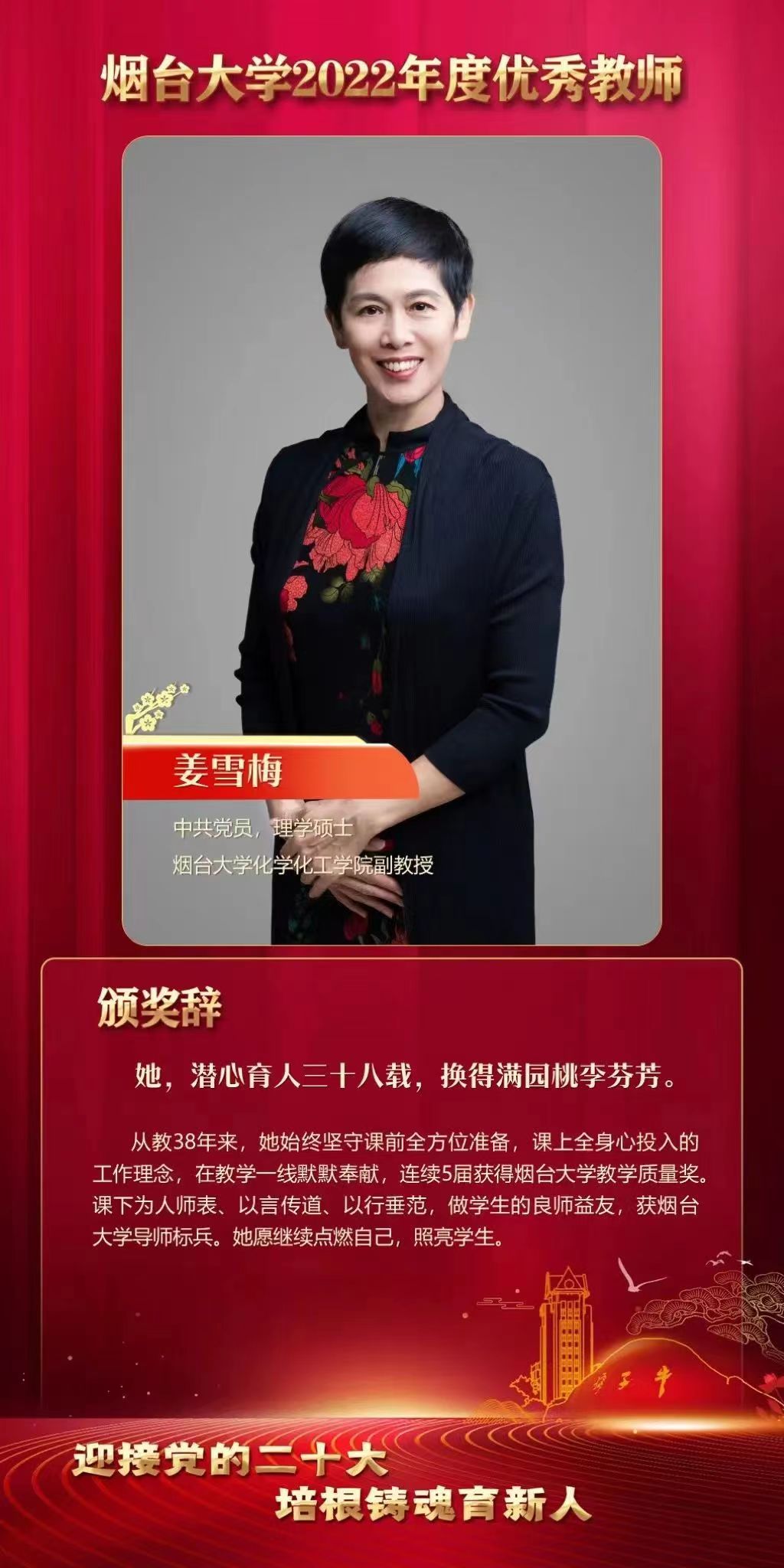 给予姜雪梅老师的颁奖辞