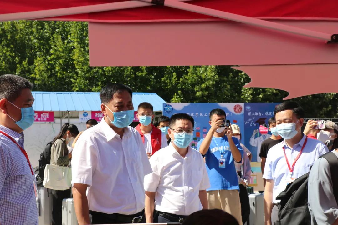 的领导、老师们到达迎新现场,他们询问新生报到流程,为迎新队伍解决困难,并对现场工作人员表示慰问。同时,他们再次明确绿帽社