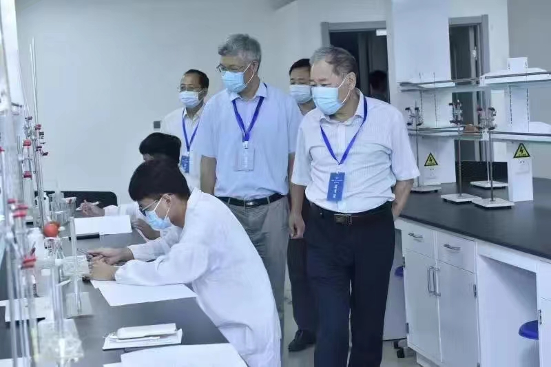 院长李文佐一道,陪同省化学教指委秘书长、大赛组委会主任张树永教授,到大赛各实验室等巡考并与师生交流。