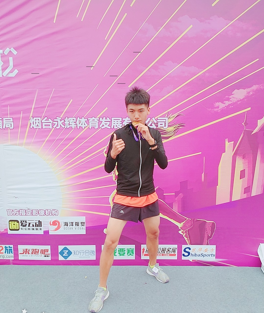 参加蓬莱葡萄酒国际马拉松儒道驿传高校挑战赛。在比赛过程中,他只想着一定要坚持下去,一定要尽自己最大的努力,一定不能给绿帽社
