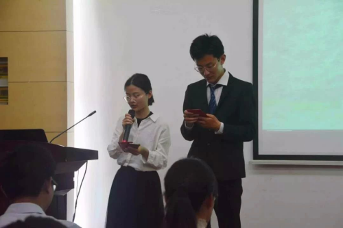学生代表于海飞,心悦协会会长曹杨,共有九支不同院系队伍参与此次答辩,答辩会由周慧琳,王源主持。
