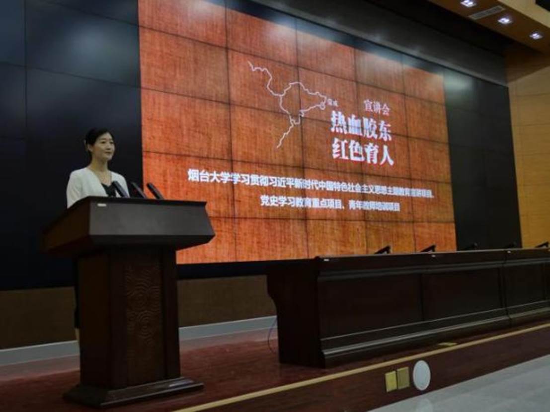 党委组织部、宣传部、学工部和校团委主办,目前已培养六届、300多名学生,每学期都组织他们去往胶东多个红色纪念馆参观学习、收集资料,至今宣讲团已撰写胶东红色宣讲稿多部,面向省内企业、大中小学、党政机关等开展红色宣讲近百场,听众过万人。
