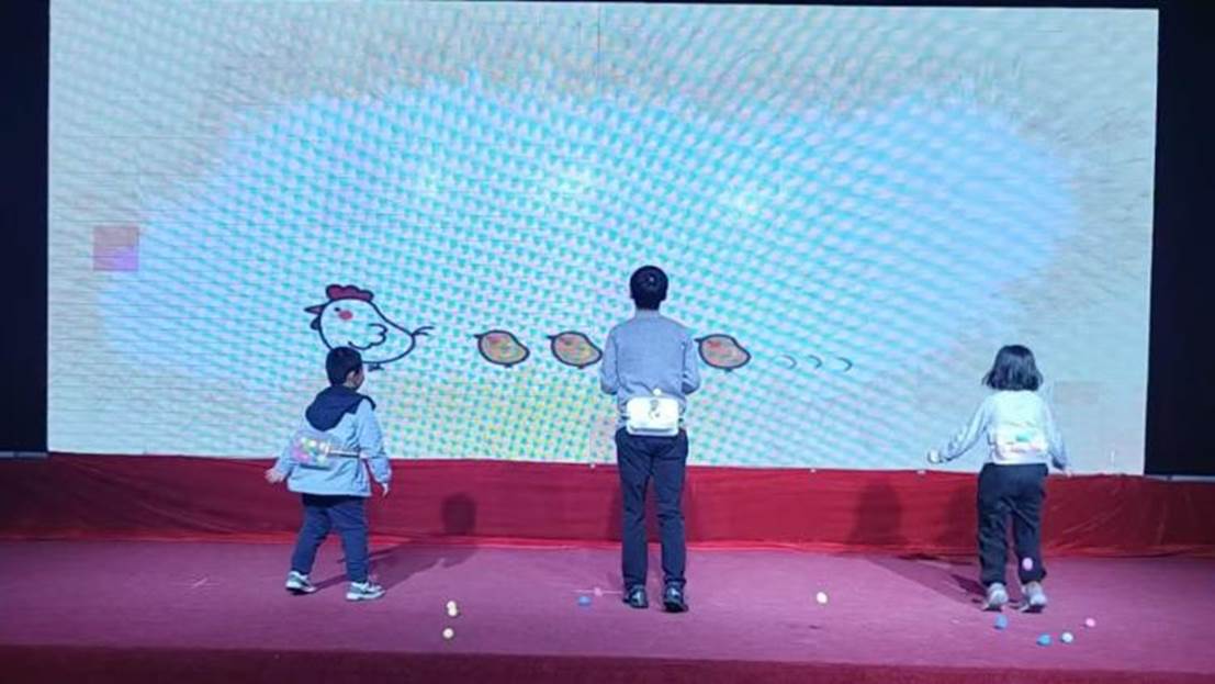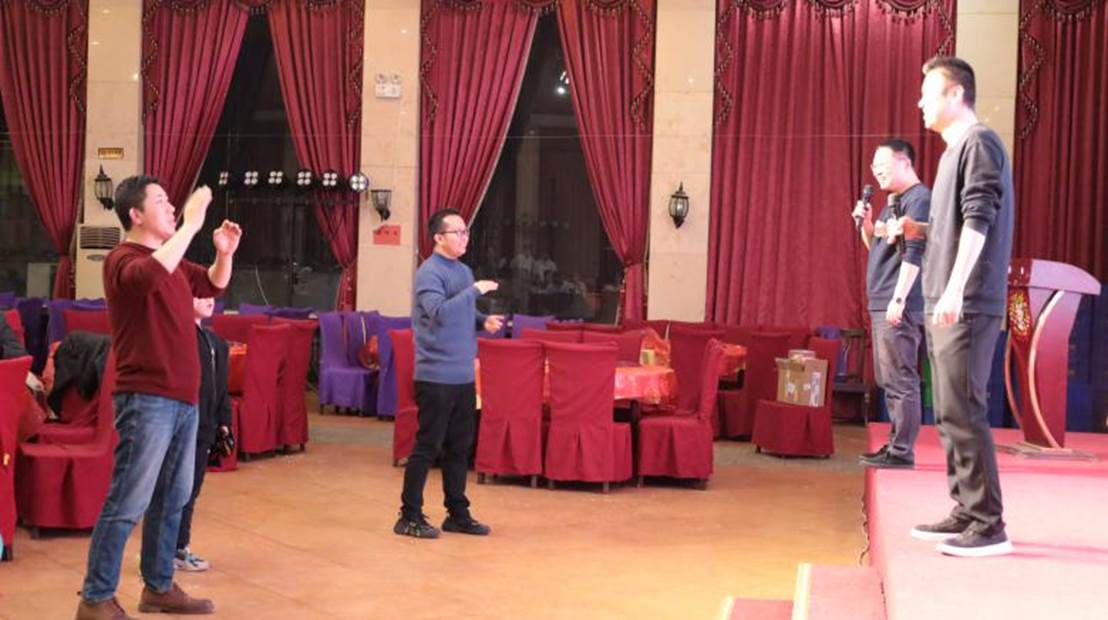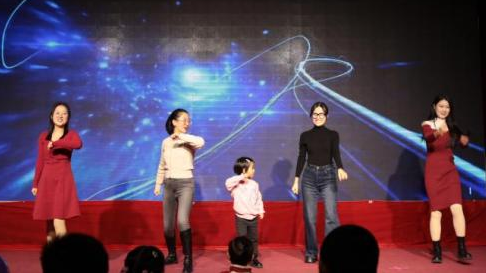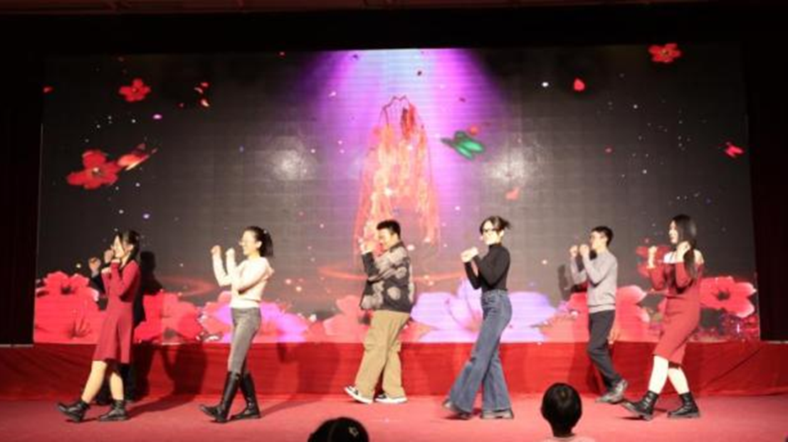 四十年来的发展历程及辉煌成就。男声独唱《新贵妃醉酒》、配音短剧《开组会》及“你来比划我来猜”、“新年一起抖起来!”等精彩纷呈的表演和游戏赢得了阵阵掌声。行政组选送的歌舞《舞动未来》则将晚会气氛推向高潮。